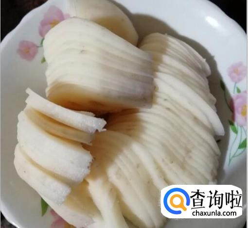 然后把莲藕去皮后洗净,切成薄片,为了防止莲藕变色,可以切好后用水泡着。