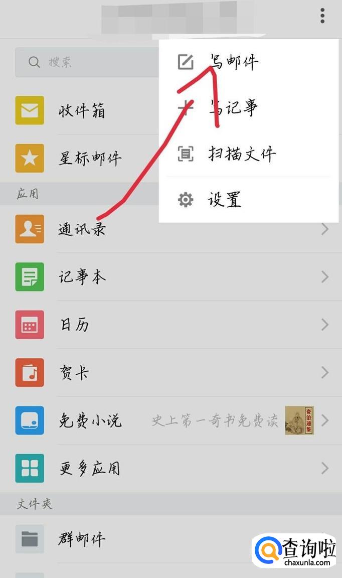 点击“写邮件”下方那个箭头,如图1箭头所示。点击群邮件,会出现一个新的界面,如图2所示。