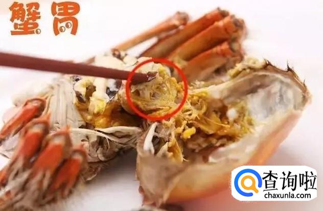 蟹胃 螃蟹属于杂食性动物,在水里的时候除了一些浮游动物、水生植物外,也食腐烂的动物尸体、微生物,因此,蟹胃里面非常脏,不能食用。