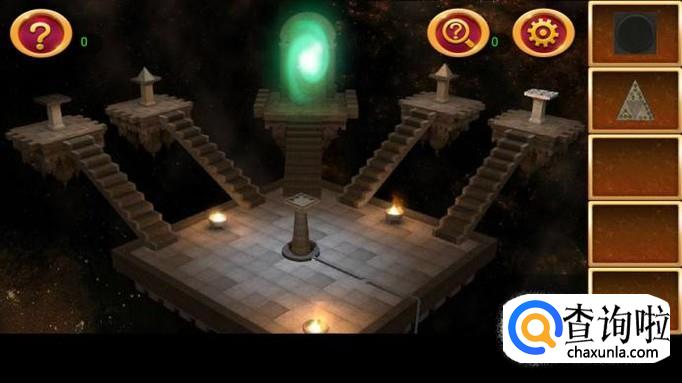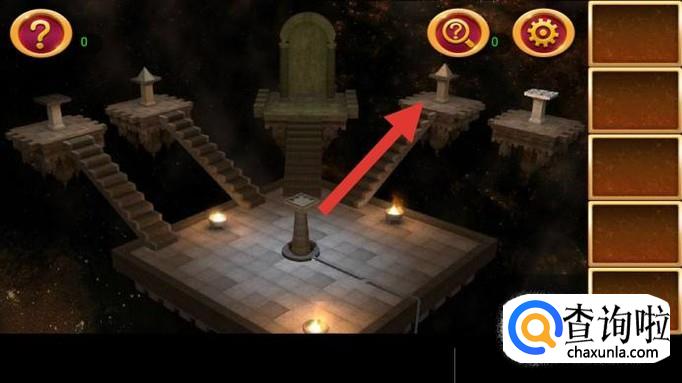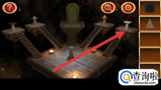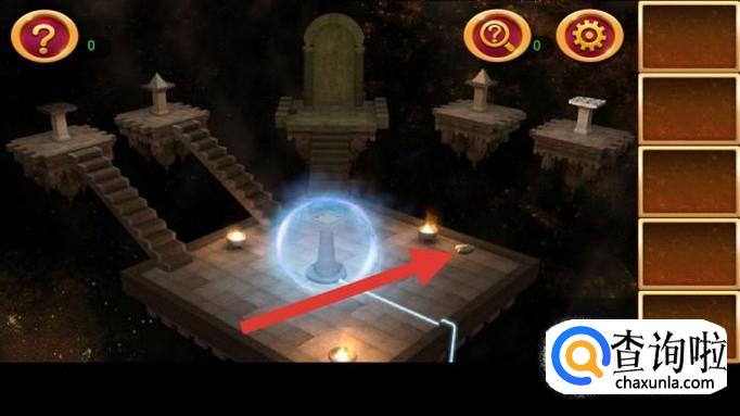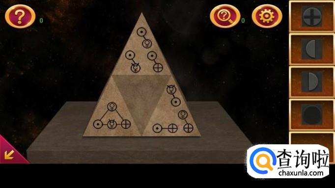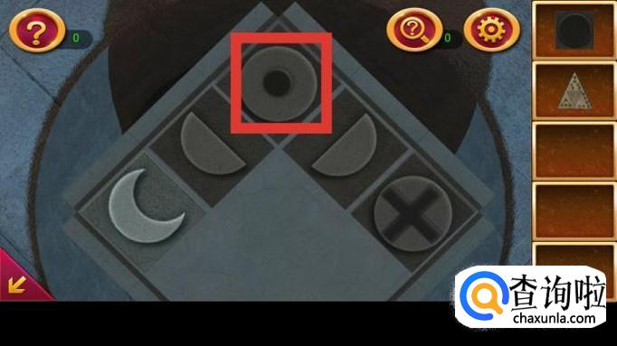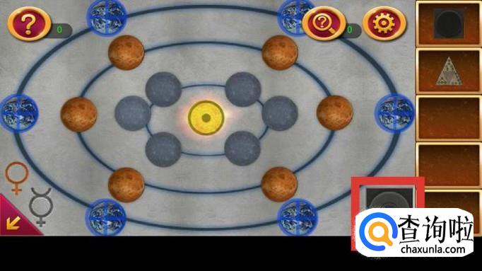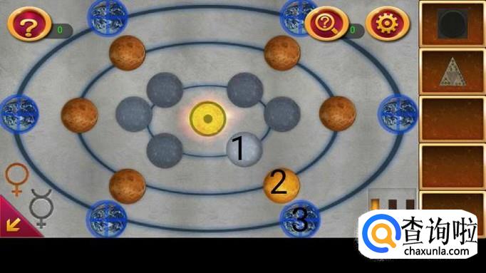 点击右边第一个机关,上面貌似一个宇宙。根据提示图纸,按图示三步点亮机关,获得圈图案。