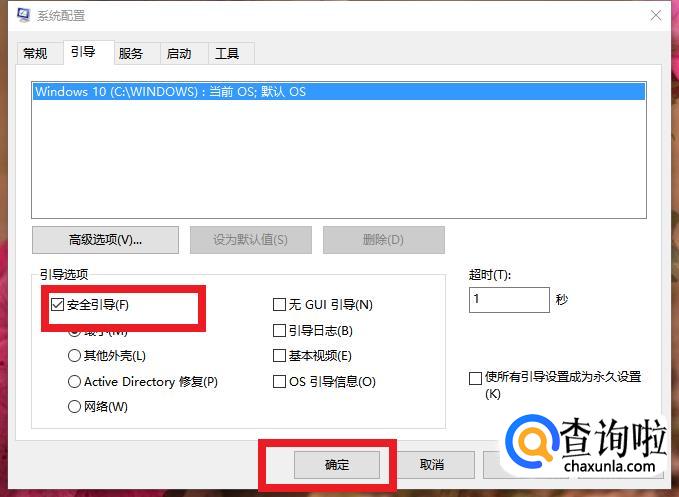 然后选择“引导”标签页,勾选“安全引导”选项。