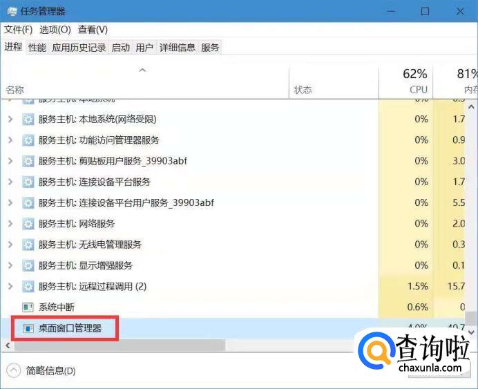 如果此时还存在开始菜单打不开等情况,可以再尝试重启“桌面窗口管理器”。