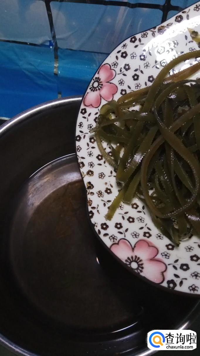 将海带用清水泡开后,也放入锅中焯水,可以煮2到3分钟再捞出来。
