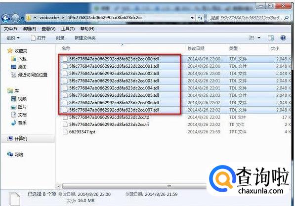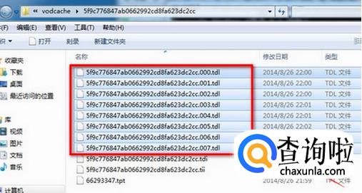 在“vodcache”的文件夹下,可以看到许多tdl文件,如果看不到这些文件,就先把视频在客户端播放一遍,然后就可以看到视频的缓存文件了。选择这些文件,进行复制。