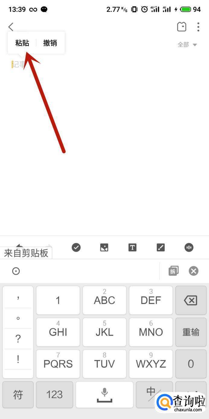 在想要使用特殊符号的位置点击“粘贴”,如图所示。