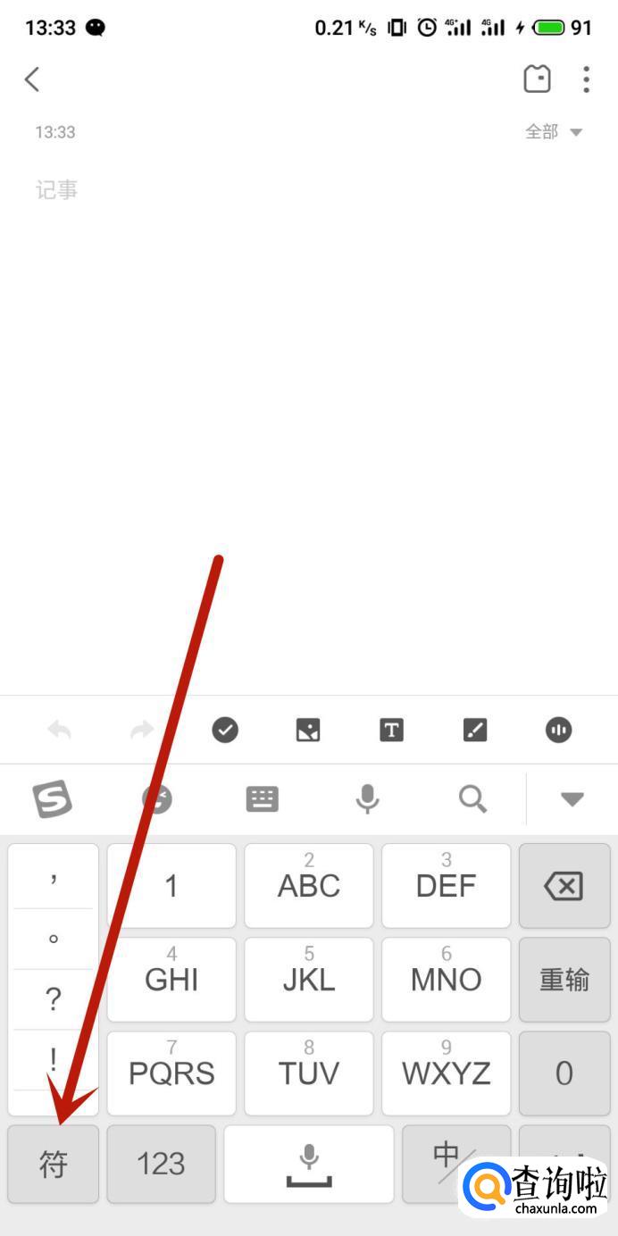 在搜狗输入法界面,点击“符”,如图所示。