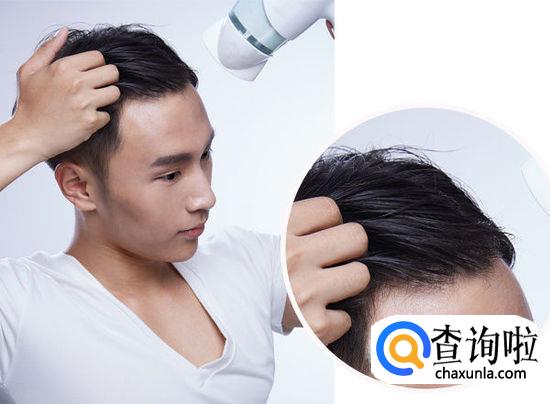 先用吹风吹三区,吹风的风向,风嘴斜向下45度,热风吹干头发,同时用手指插入发丝中向后作带动发丝走的动作,使头发有向后的感觉。