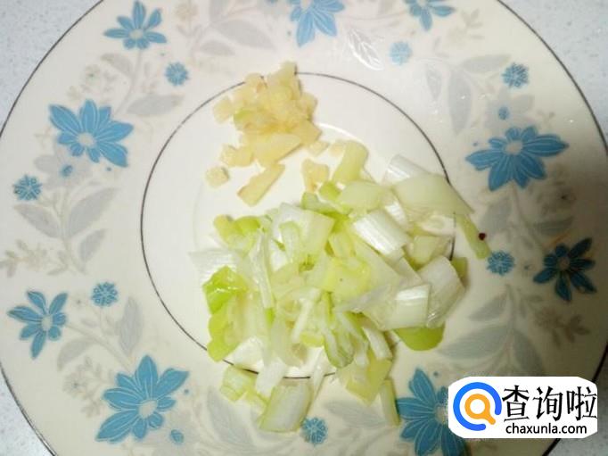 青椒用水清洗干净,控干水分,切成块。切好葱,姜,备用。