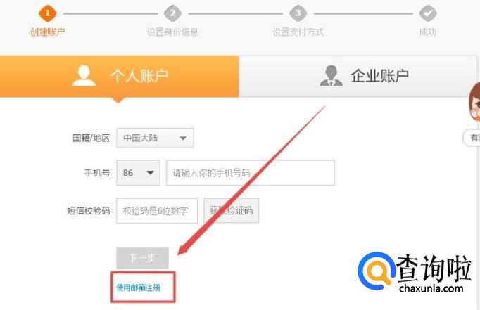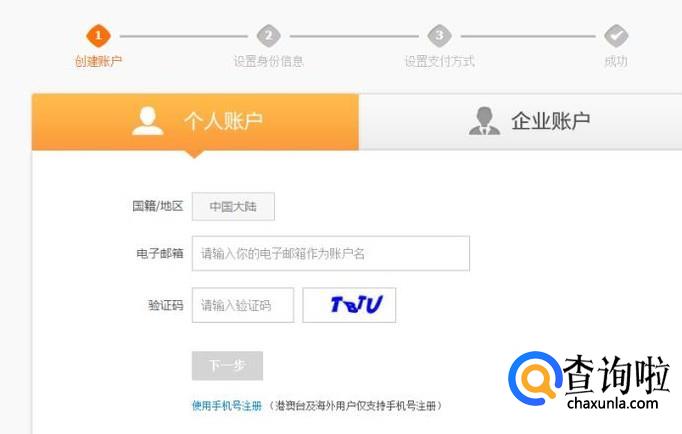 然后你就可以用邮箱来注册你的新支付宝账号了,每个人可以拥有三个实名支付宝账号。