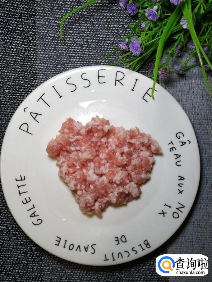准备食材,将买来的新鲜五花肉,洗净后剁成肉末,放入盘中备用。