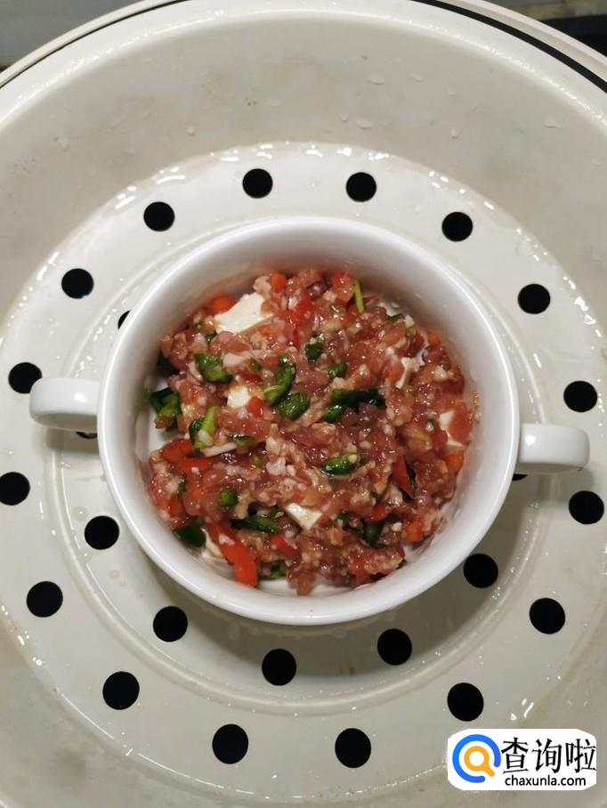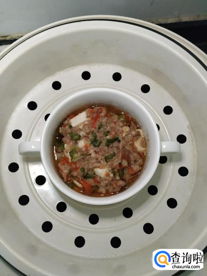 锅中烧开水,然后将豆腐放上蒸锅,大火将水烧开,转小火,蒸20分钟左右。