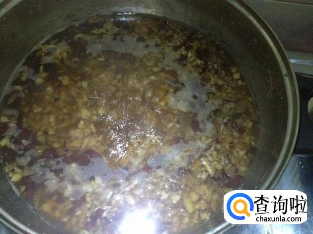 锅里倒入凉水,将姜泥倒入。姜泥一定要在水凉的时候倒入,这样才能把姜的香味煮出来。