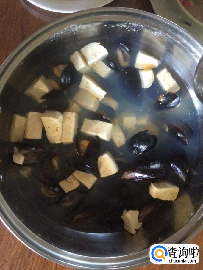 我们先把水中加入姜片,然后加入洗干净的淡菜,开锅后加入切好的豆腐,出锅之前加入一些葱花就可以了。