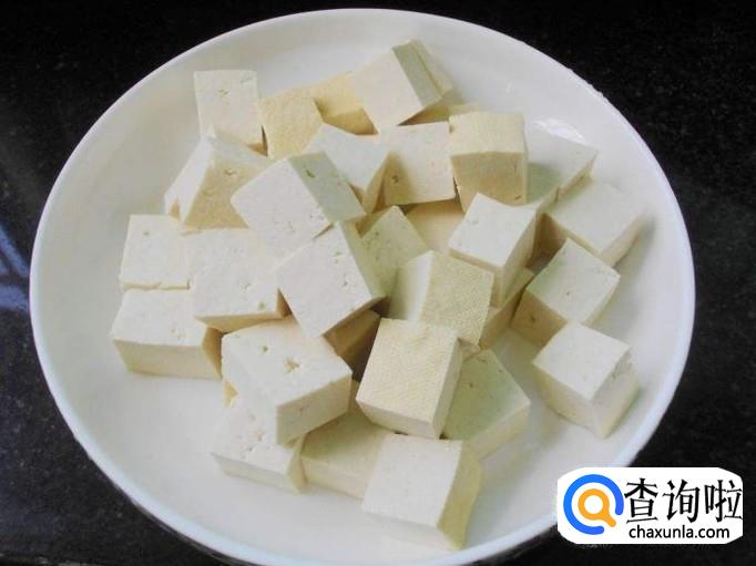 然后把豆腐切成豆腐块,豆腐块的大小尽量大一些,要不然的话在煮的过程中豆腐会散掉。