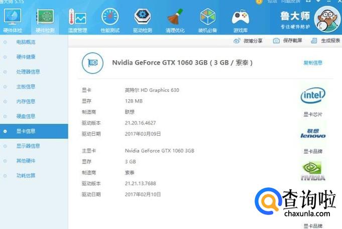 点击硬件检测,自动检测出系统的显卡,CPU,硬盘,内存等条件。