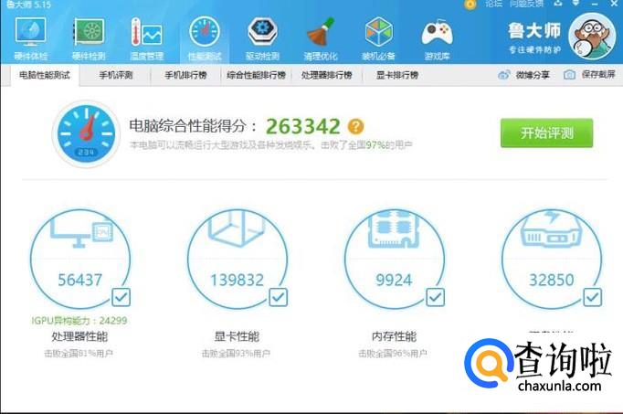 下载安装完成后,点击运行,进入鲁大师的软件界面,如图所示,点击跑分进行跑分。