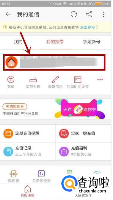 在淘宝上,我们不仅仅可以查询宽带账号余额,我们还可以查询手机号码余额和固定电话余额,我们也是先绑定手机号码,退回啦刷新,就可以看到自己手机号码和固定电话的余额了。