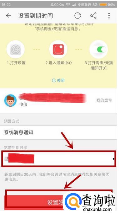 最后我们设置宽带的到期时间后,选择到期的时间,然后点击“设置好了”如图所示。