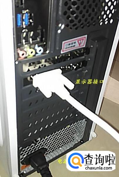 安装好显卡以后,主机箱连上电源线,还有显示器的接口。
