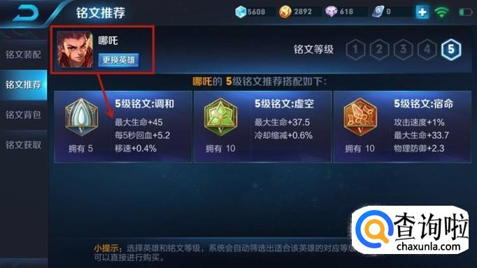 然后选择你想要的英雄和所对应的铭文,如下图所示。