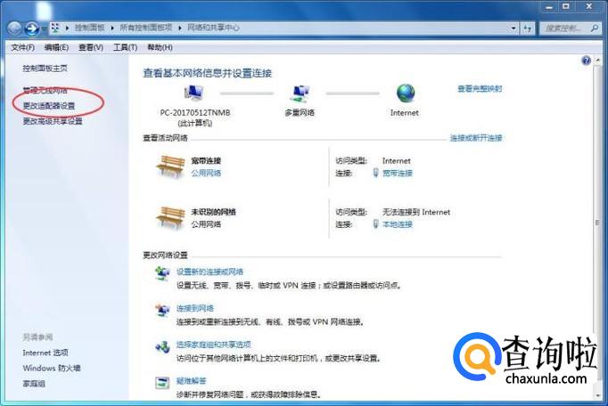 然后点击左侧的【更改适配器设置】选项,如下图所示: