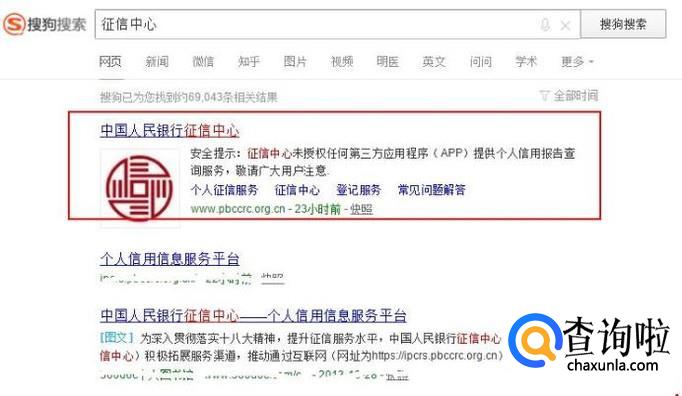 搜狗搜索征信中心,点击进入该网页。