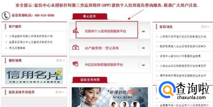 进入如图所示的页面,点击如图所示的标记:互联网个人信用平台,进入新界面。