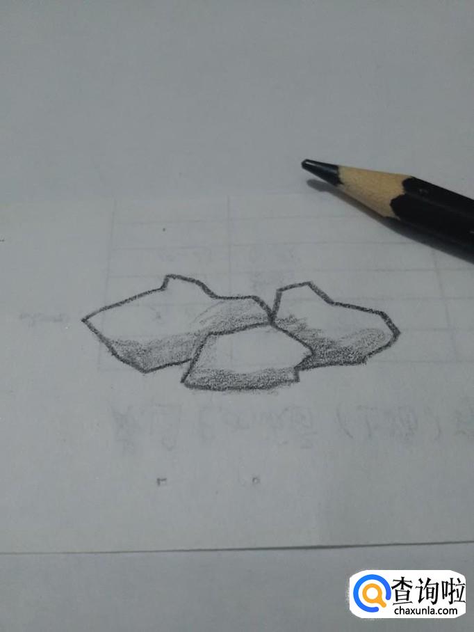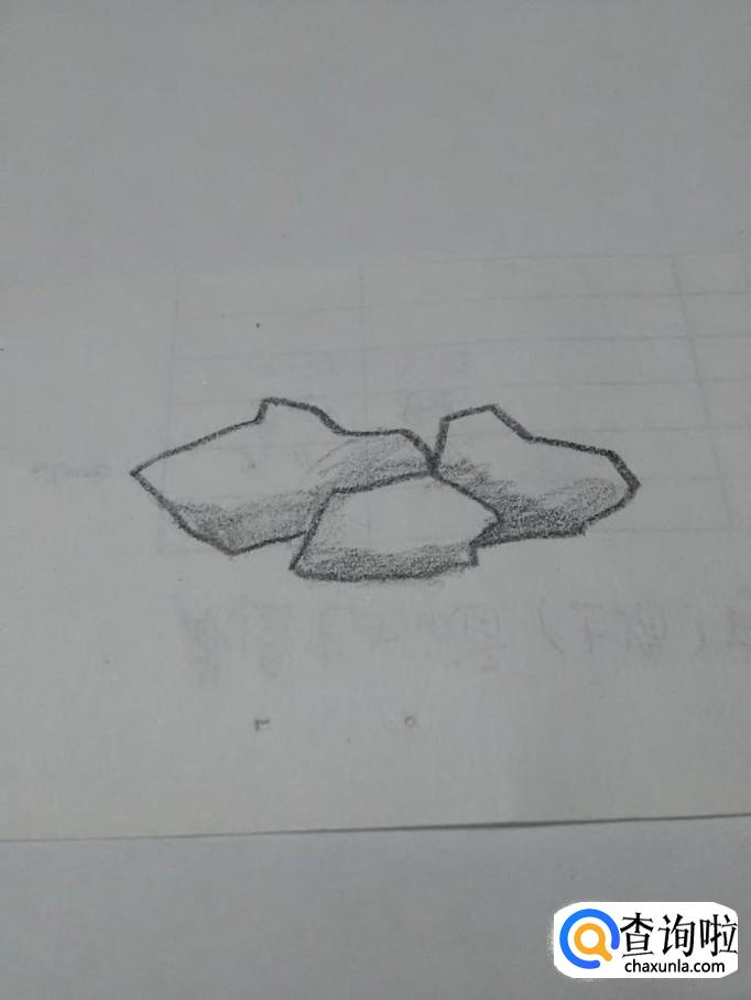 用笔在三块石头下方涂一些阴影,石头就画好了。