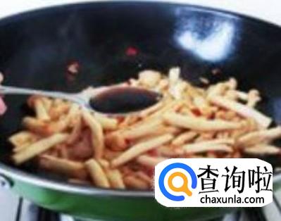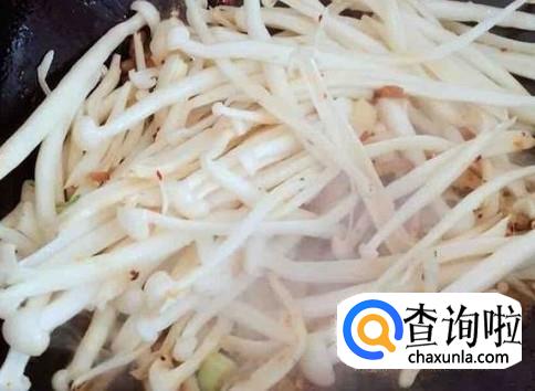 然后放海鲜菇进去,加适量的盐,大火翻炒2分钟左右。