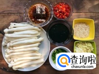 海鲜菇,蚝油,剁椒,姜蓉、蒜米、香葱、香油、生抽。