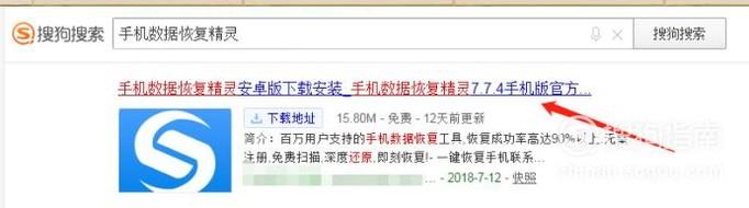 首先我们打开搜狗搜索引擎搜索“手机数据恢复精灵”,在搜索结果中点击官网进入。