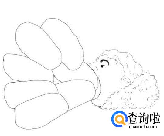 首先画出主角的衣服领子,然后在上面画出细节线,如图所示: