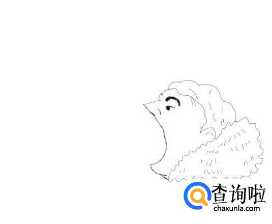 在衣服领子的基础上画出主角的头发,然后再在头发的基础上再画出人物的眼睛和大嘴巴,如图所示:
