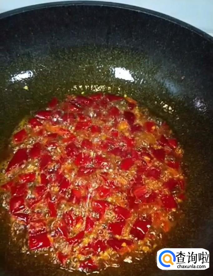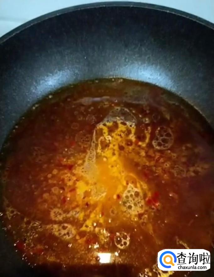 然后我们在锅中放入少许红油,麻油,香油,放入干辣椒,榨香,浇在肉片上