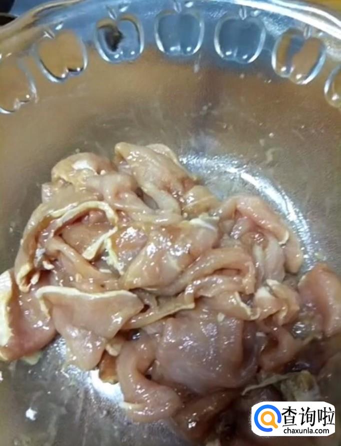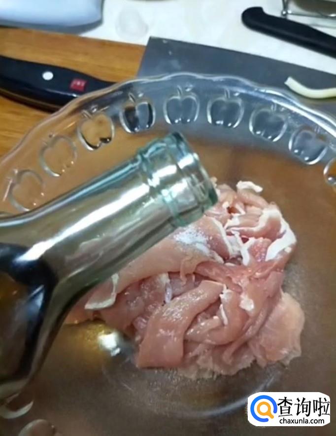 首先我们将准备好的里脊肉用刀切成大薄片,放入一个碗中,加入适量的盐,料酒,老抽,再打入半个鸡蛋清,少许淀粉,抓拌均匀备用