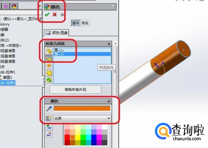 所选几何体一栏中再点击一下香烟头部的平面,