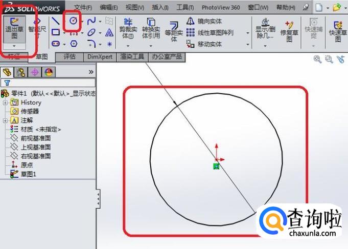 最后点击工具栏中的“退出草图”,