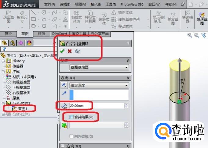 随后会出现一个“凸台-拉伸”对话框,