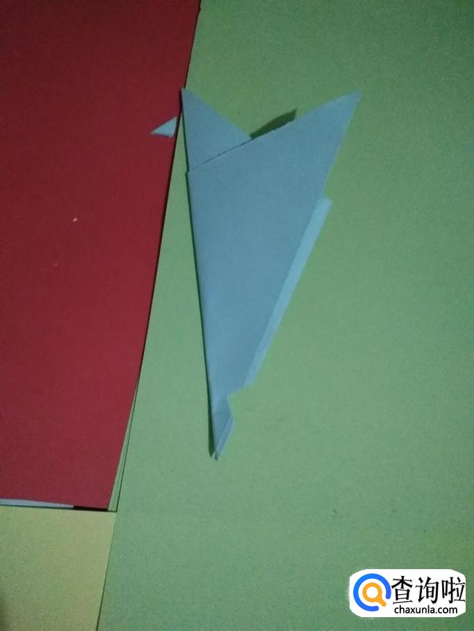 然后把彩纸翻转,翻转后重叠折合,如图