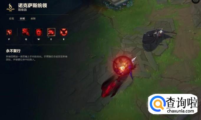 E技能是永不复行,这是一个禁锢技能,需要先放出去,再拉回来才可以禁锢到
