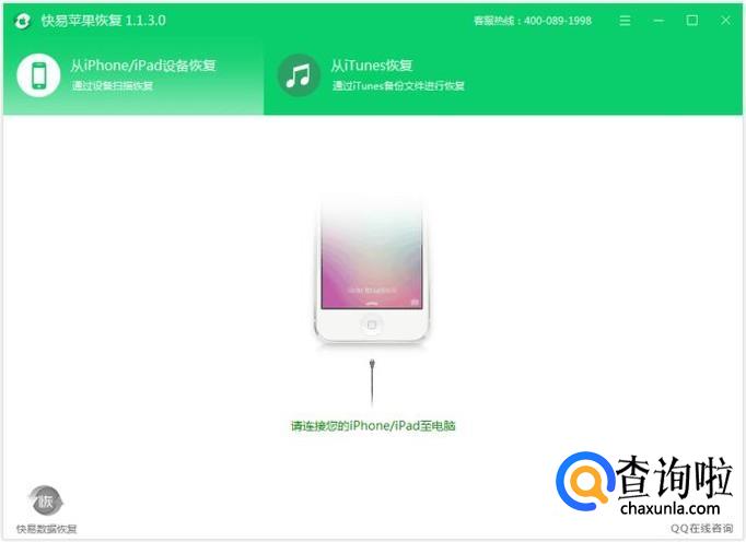 在电脑上安装数据恢复软件,本文以苹果手机为例讲解,选择快易苹果恢复软件为大家演示恢复的步骤。
