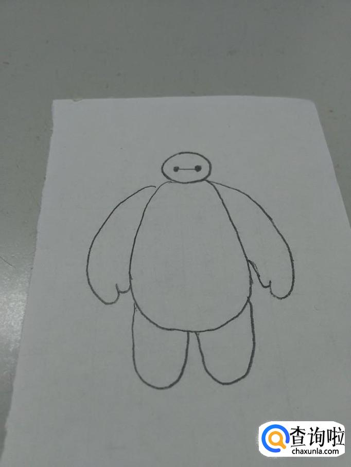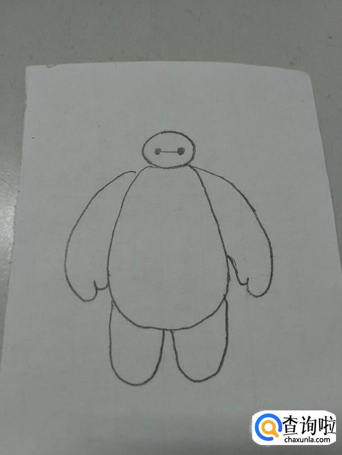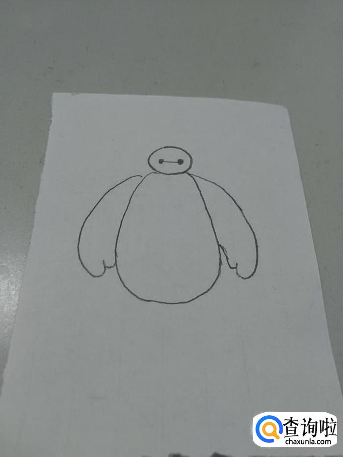 画大白,要画出椭圆形的头、两点一线的五官、肥大宽厚的身体、粗粗的手指。下面就开始画大白。