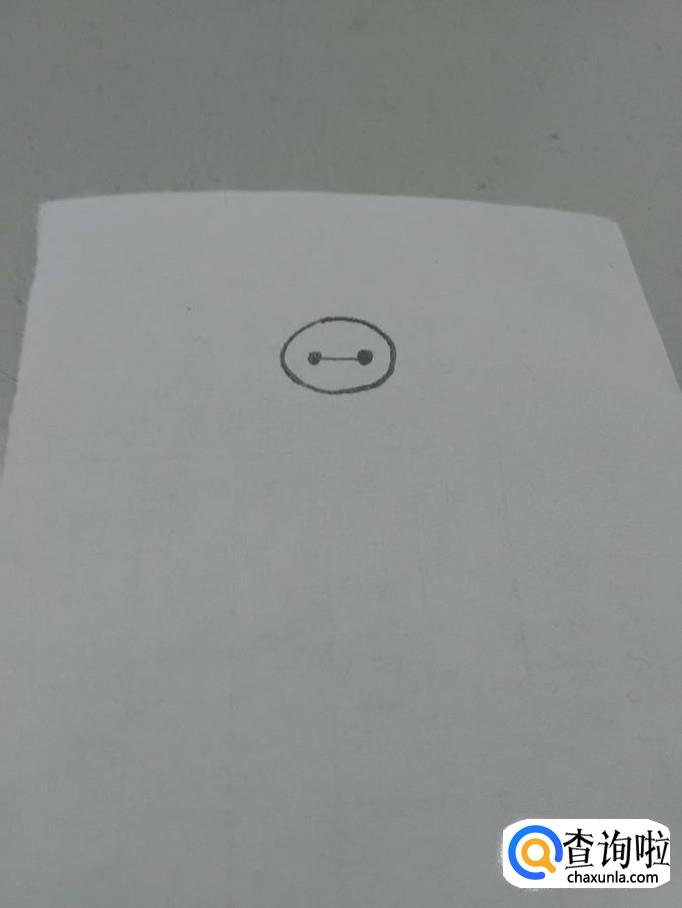 在头部上面,画两个黑点,中间连一条直线,这是大白仅有的五官。