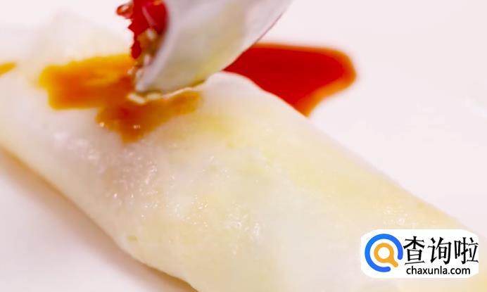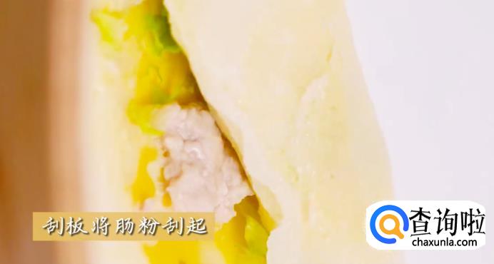 之后用刮板把肠粉刮起来。