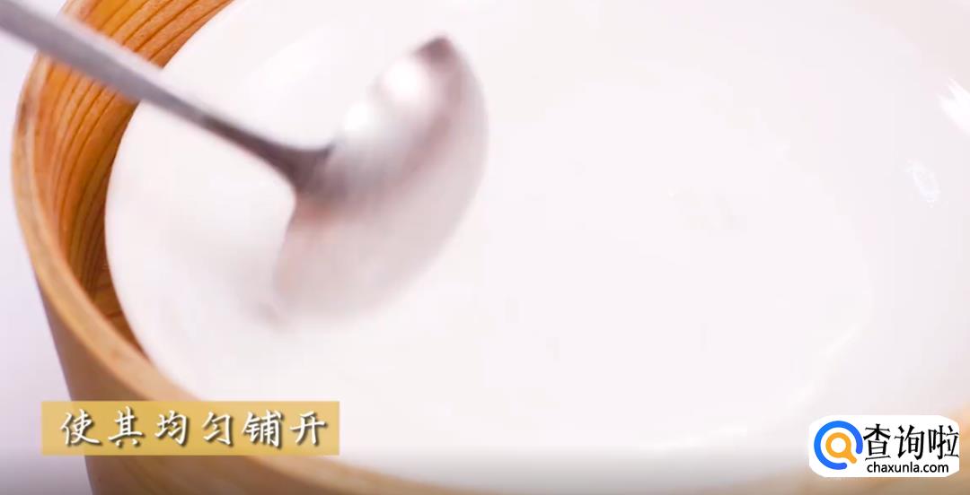 将粘米粉均匀铺开。