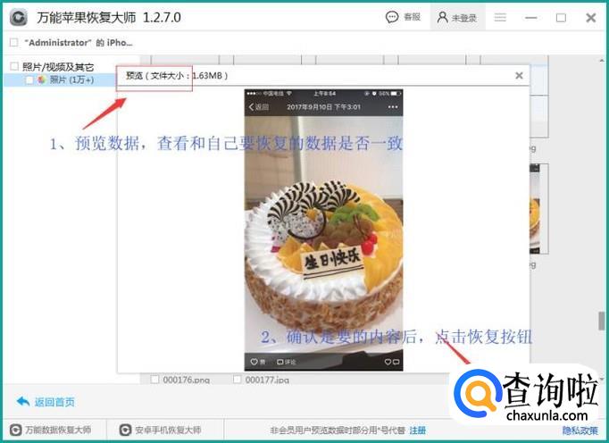 最后,在扫描结束的时候,选择要的数量,进行预览,从中找到自己要的数据,点击恢复按钮,保存到电脑上,这样就可以将手机上丢失的数据找回了。