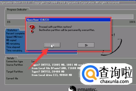 确认之后,会弹出一个小框提示是否需要覆盖,覆盖后磁盘内容将会被清空,点击【yes】即可。