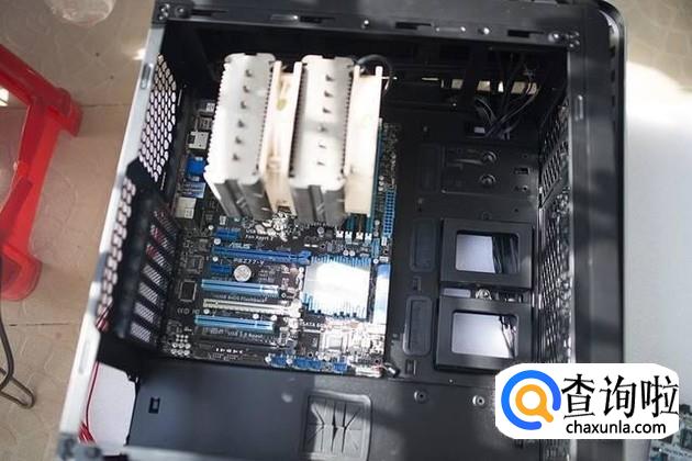 先准备一个机箱,打开机箱后盖,机箱里会有螺丝钉、尖型塑料卡’、带有螺纹的圆柱等附件。