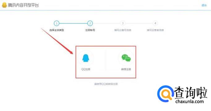 选择主体类型之后,确定使用QQ还是微信账号进行注册。注:这里选择的账号就是以后登录的账号了。