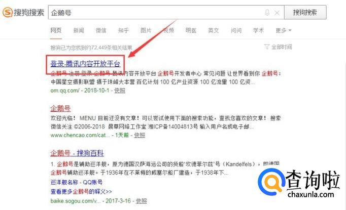 通过搜索工具搜索“企鹅号”,进入搜索结果中的官方网站。